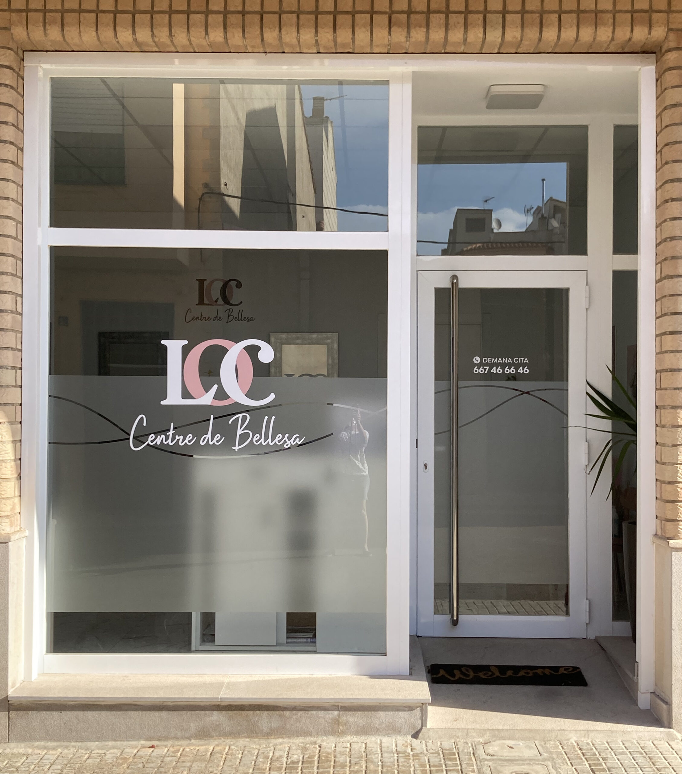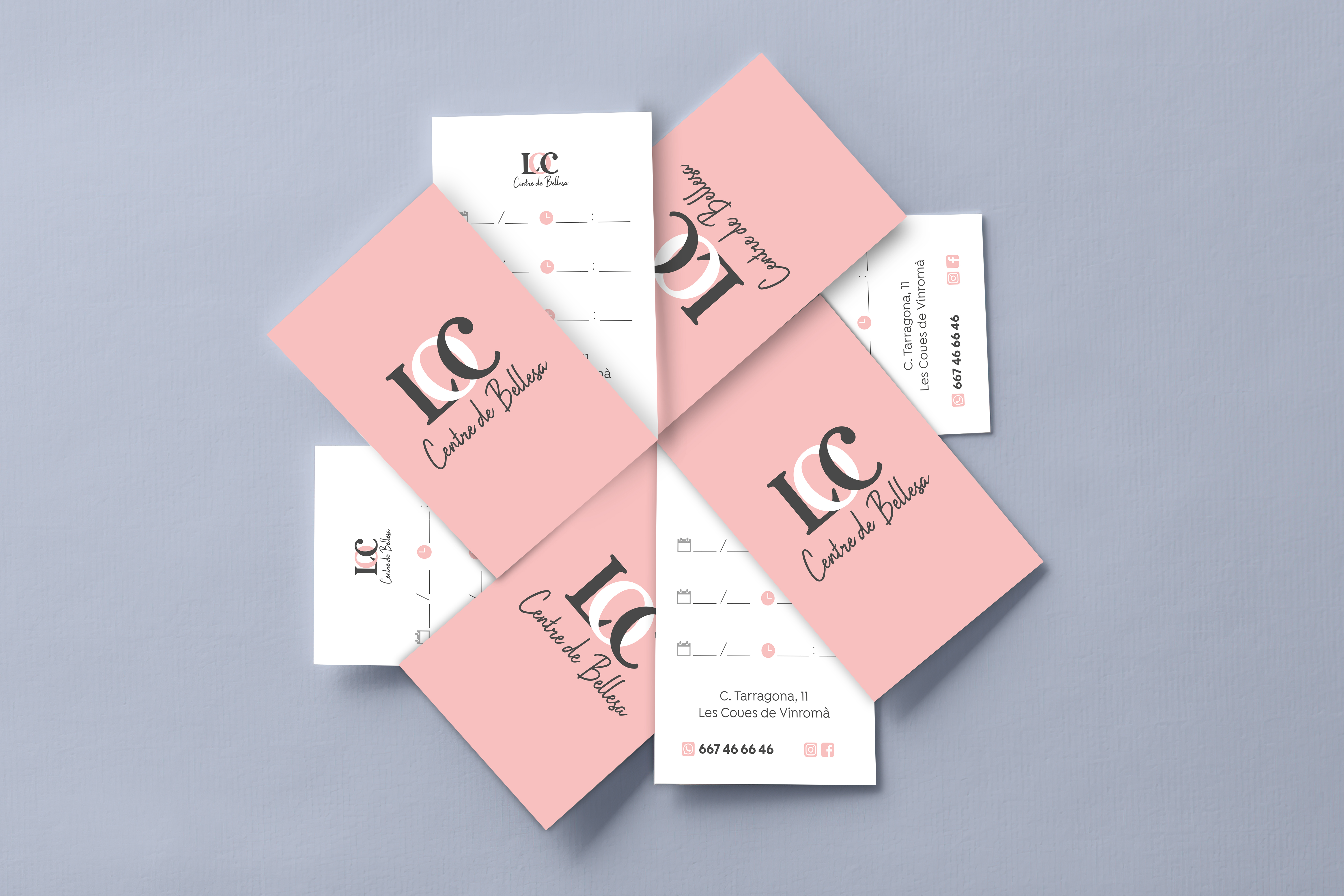 LOC Centre de Bellesa és l’exemple d’un projecte nou que demanava dissenyintegral d’imatge corporativa i diferents aplicacions, des del logotip fins a la retolaciódel local amb vinils per a vidres, fotoquadres i lletres corpòrees per la decoració, itambé papereria bàsica com les targetes de visita o regal promocional, com imansper la nevera o bàlsam labial amb el logotip del centre de bellesa.